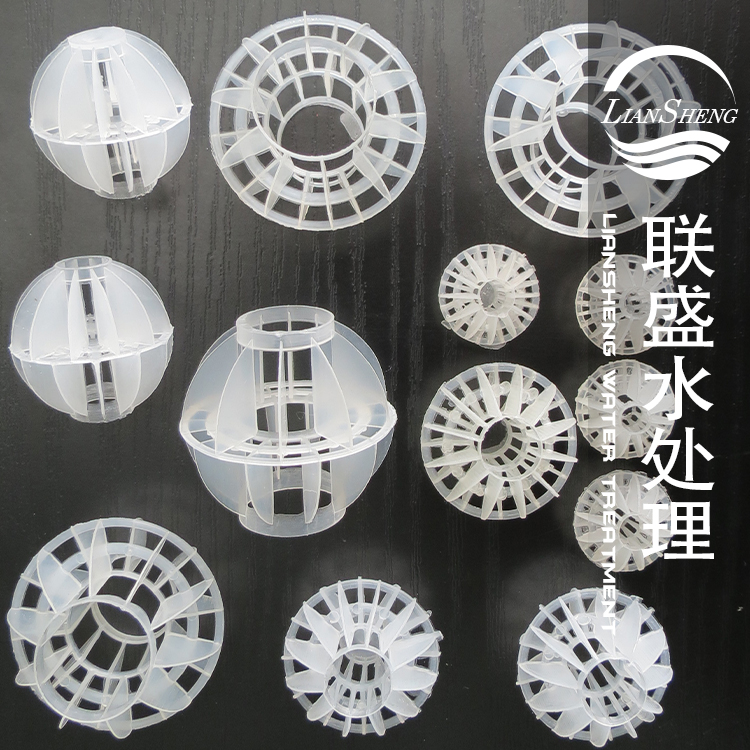 液面覆蓋球為聚丙烯空心圓球,以聚丙烯為原料,經發泡、收縮成型的圓形塑料填料,分為帶邊覆蓋球與不帶邊覆蓋球兩種型號,帶邊覆蓋球具有重心穩定,邊與邊重疊,覆蓋效果好的特點,其作用是抑制酸霧揮發,保護操作人員健康,減少大氣污染和空氣對水質的污染,有效提高凝結水質量,有利于發電機組的安全運行。